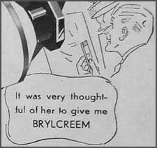 BRYLCREEM! ... Jack can't do without it. I'll put a bottle in his Christmas stocking.