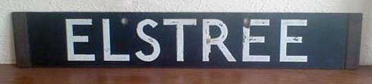 London Transport plate for display on the front of trains that would have terminated at Elstree. Plate in the possession of Darren Kitson.